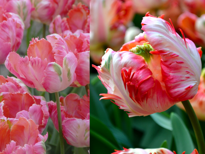 Обладает большими цветками с гофрированными и изрезанными лепестками, напоминающими перья экзотических птиц. Бокал высотой 10 см и диаметром 8 см. Лепестки окрашены в мягкие оттенки абрикосового, розового, зелёного и кремового цветов, создавая эффектный и нежный переход. Высота растения достигает 55-65 см, что делает его идеальным для создания ярких акцентов в цветниках и букетах. Цветет этот сорт в середине и конце весны, добавляя нотку элегантности и экзотики в садовый ландшафт.Где в саду высаживать и с какими растениями использовать: