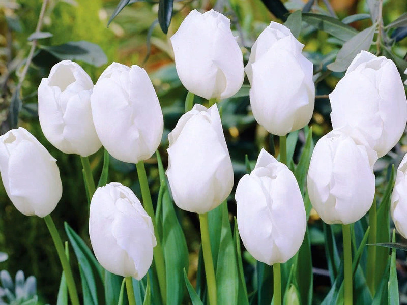 Ослепительно-белые крупные бокалы на длинных зеленых ножках – вот что вырастет из луковицы тюльпана Bolroy Silver (Болрой Сильвер), если стать его счастливым обладателем.