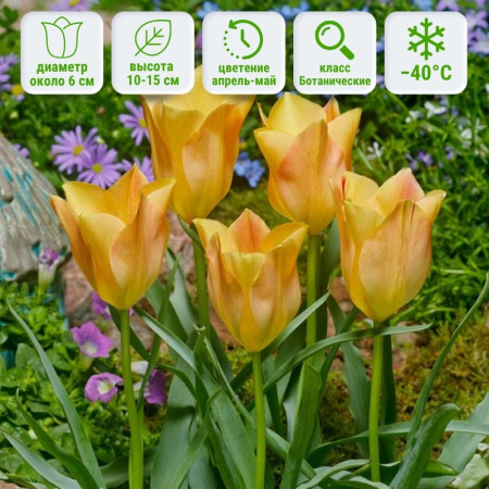 Маленький и уютный - идеальный весенний наполнитель горшков и кашпо тюльпан Баталини Брайт Гем (Batalinii Bright Gem). Его нежный жёлтый цвет с мягким янтарным свечением словно отражает первые лучи солнца, делая композиции в саду живыми и тёплыми даже в прохладные апрельские дни.