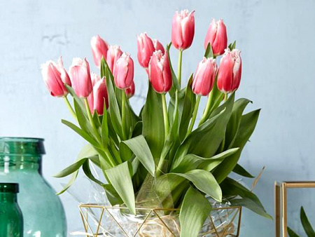 Молодой и очень популярный сорт тюльпанов. Его любят за двойной красно-молочный окрас и бахромчатые края. Основной цвет скорее лилово-розовый, нежели красный. Бокал невысокий, всего 5-6 см. Сам тюльпан Canasta довольно небольшого роста 35-45 см, тем не менее он хорош для срезки так как цветок долго держится.