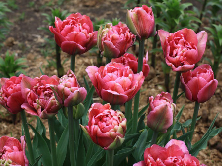 Тюльпаны сорта Шато относятся к классу Махровых поздних. Пионовидной формы цветки начинают красоваться на клумбах уже в майские деньки. Интенсивный розовый цвет с примесью кораллового приятен взору. Лепестки волнистые, внешние с салатовой продольной полосой, отгибаются наружу. Эти махровые чаровницы подойдут натурам утончённым и романтичным. Высота бокала около 9 см. Ищете сорт тюльпанов для создания цветочных композиций? Тогда Вам следует приобрести тюльпан Chato, который способен удовлетворить даже самый изысканный вкус. Ровные и гибкие стебли высотой до 60 см отлично держат объёмный цветок. Ароматные букеты смогут украсить любой праздник и разбить не одно девичье сердце.