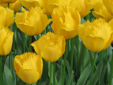 Высота тюльпана Crispy Mary достигает 50-60 см, листва темно-зеленая с сизым оттенком. Обладает тюльпан этого сорта средней скоростью роста, подходит как для озеленения и украшения клумб, так и для букетов. Красивый нежно-желтый цветок возвышается на прочной ноге высотой 50 см. Легко размножается, дает прекрасную срезку. Период цветения тюльпана Криспи Мери приходится на апрель-май, распускаясь восхитительным крупным бутоном ярко-желтого оттенка с очаровательной игольчатой бахромой. Диаметр цветка достигает 10-15 см, высота бутона 8-10 см с нежным сладким ароматом. Продолжительность цветения одного бутона 10-12 дней, цветение продолжительное благодаря многочисленным бутонам.