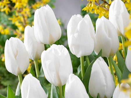 | Клумба с белыми тюльпанами получается очень изысканная и нежная. При создании клумбы из весенне-цветущих цветов важно правильно «перемешать» их подобрав по цветовой гамме и форме бокала, чтобы композиция выглядела естественно и гармонично. Предлагаем создать бело-розовую клумбу с тюльпаном Дарвисноу и представителями розовых сортов. Главная особенность белых сортов заключается в том что она становится более ослепительной и нежной в дополнении с другими красками. Для небольшого цветника в нежных тонах Вам необходимо будет использовать не менее 25 шт луковиц каждого сорта, а в дополнение, чтобы подчеркнуть индивидуальность вашей клумбы на переднем плане расположите утонченные гиацинты в количестве приблизительно 25 луковиц. И в результате у Вас получится великолепный, наполненный нежностью цветник. |