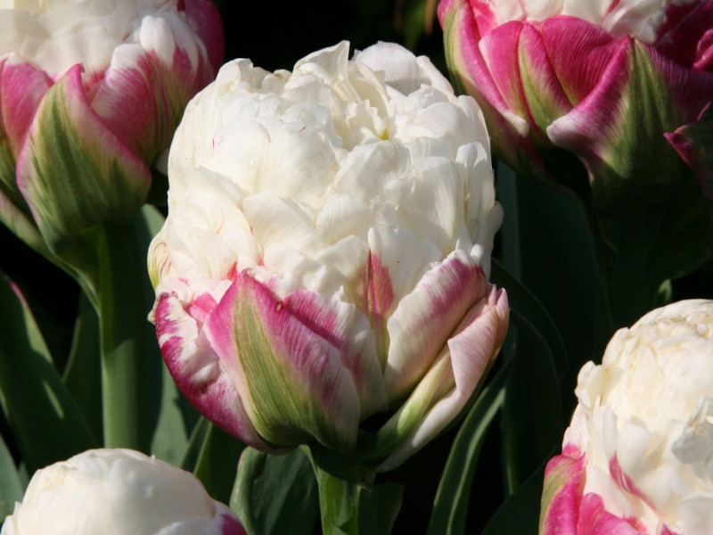 Тюльпан Double Polar относится к махровым поздним сортам (класс DL). Цветет тюльпан Double Polar в мае, образуя бело-розовый бутон, словно сливочное мороженое в розовом стаканчике высотой 6-8 см, диаметр до 12 см. Такой сорт тюльпана подходит для любителей экзотики в прекрасном саду. Продолжительность цветения - до 2-3 недель. Особое отличие цветов этой группы - имеют большое количество лепестков. Цветки этой формы напоминают густомахровые пионы. Обладает тюльпан Double Polar средней скоростью роста, подходит как для озеленения и украшения клумб, так и для букетов, отлично растет на хорошо освещенном месте и в полутени. Красивый и необычный цветок тюльпана возвышается на крепкой ноге, высотой 45 см.