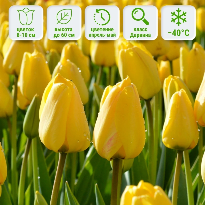 Море солнечного света Вам подарит островок из жёлтых тюльпанов GOLDEN PARADE (Голден Парад). Почувствуйте струящуюся энергию от своего цветника во время весеннего цветения красочных тюльпанов Голден Парад.