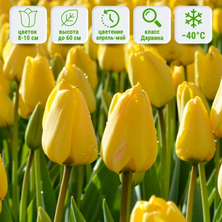 Тюльпан Голден Парад относится к дарвиновым гибридным сортам (класс DH). Цветет тюльпан GOLDEN PARADE в начале мая, образуя высокий, 10 см, насыщенно желтый бутон. Обладает тюльпан Голден Парад средней скоростью роста, подходит как для озеленения и украшения клумб, так и для букетов. Красивый насыщенно желтый цветок возвышается на прочной ноге высотой до 60 см. Форма цветка классическая крупная, легко размножается, прекрасно подходит для выгонки.