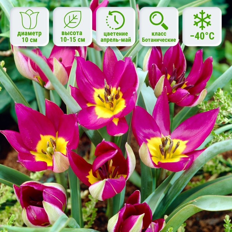 Этот тюльпан идеален для рокариев, альпинариев, переднего края цветников, его природный облик гармонично вписывается в садовые композиции с минималистичным стилем. Благодаря низкому росту и яркому цвету он создаёт эффектный цветовой акцент среди первых весенних растений. Особенно красиво сочетается с белыми мускари, подснежниками и крокусами. Tulipa pulchella Eastern Star — отличный выбор для тех, кто хочет добавить в сад яркость в самый ранний период года.Рекомендации по посадке и уходу: