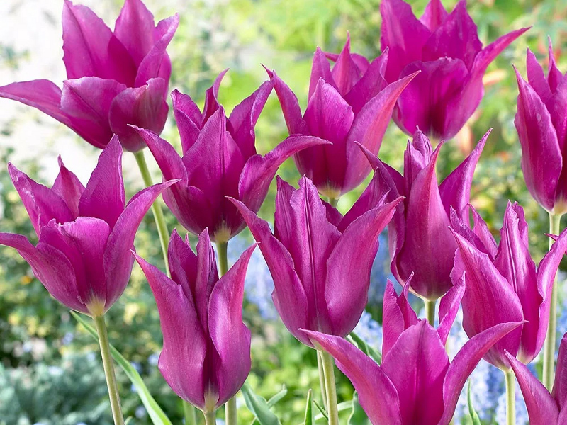 Тюльпан Пепл Дрим относится к лилиецветным сортам (класс L). Цветет лилиецветный тюльпан этого сорта в мае, образуя шикарный высокий бокал с остроконечными отогнутыми наружу лепестками, высота бокала до 10 см. Цвет тюльпана Перпл Дрим необыкновенного сиреневого оттенка, почти голубого. Обладает тюльпан Пурпл Дрим средней скоростью роста, подходит как для озеленения и украшения клумб, так и для букетов, отлично растет на хорошо освещенном месте и в полутени. Красивый цветок лилиецветного тюльпана возвышается на прочной ноге, высотой до 60 см. Тюльпаны лилиецветного типа очень широко применяются как и в украшении клумб, так и в срезке.