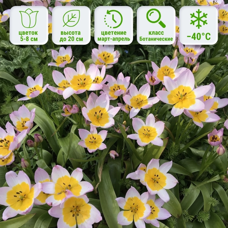 Видовой тюльпан Saxatilis не отличается прихотливостью, ведь в природе он растет на скалах. На цветоносах длиной до 15 см сначала в конце апреля появляются узкие желто-лиловые бутоны высотой 3-4см, потом распускаются звездочки, в середине ярко-желтые, а по краям нежно-лиловые. Продолжительность цветения тюльпана Saxatilis 10-12 дней сопровождаясь благоухающим, дивным ароматом. Применяя луковицы тюльпана Саксатилис возле камней рокария или альпинария, Вы возвращаете это растение в его природную среду, где оно выглядит наиболее органично. Рядом с желтыми купальницами, примулами или нарциссами данный тюльпан выглядит особенно изящно и утонченно.
