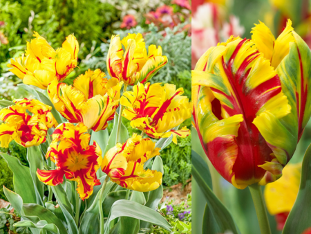 Сорт является одним из самых эффектных представителей попугайных тюльпанов, привлекающих внимание. По своему внешнему виду тюльпан Техас Флэйм отличается крупными, широкими и волнистыми лепестками с характерными зубчатыми краями. Высота растения достигает 45-50 см, а диаметр цветка может достигать 10-12 см, что делает его одним из самых заметных тюльпанов в саду. Он распускается поздней весной, добавляя яркие краски в завершение цветочного сезона. Зимостойкость -35°C.Где в саду высаживать и с какими растениями использовать