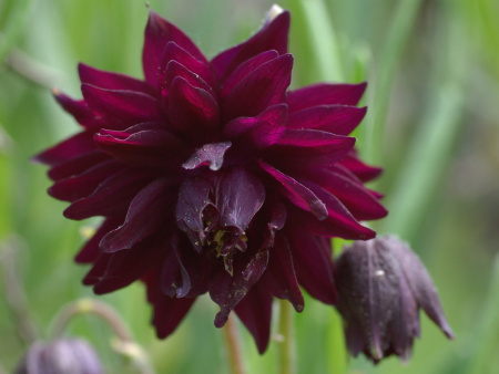 Цветок аквилегии Бордо Барлоу распускается уже в конце весны. Красивый винный цвет бутонов эффектно смотрится на длинных и тонких стеблях высотой в 70 см. У данного сорта цветок махровый и достаточно крупный 9 см, центр ярко-жёлтого цвета. В южных регионах цветение наступает к концу мая, в более прохладных на пару недель позже. Длится около месяца.