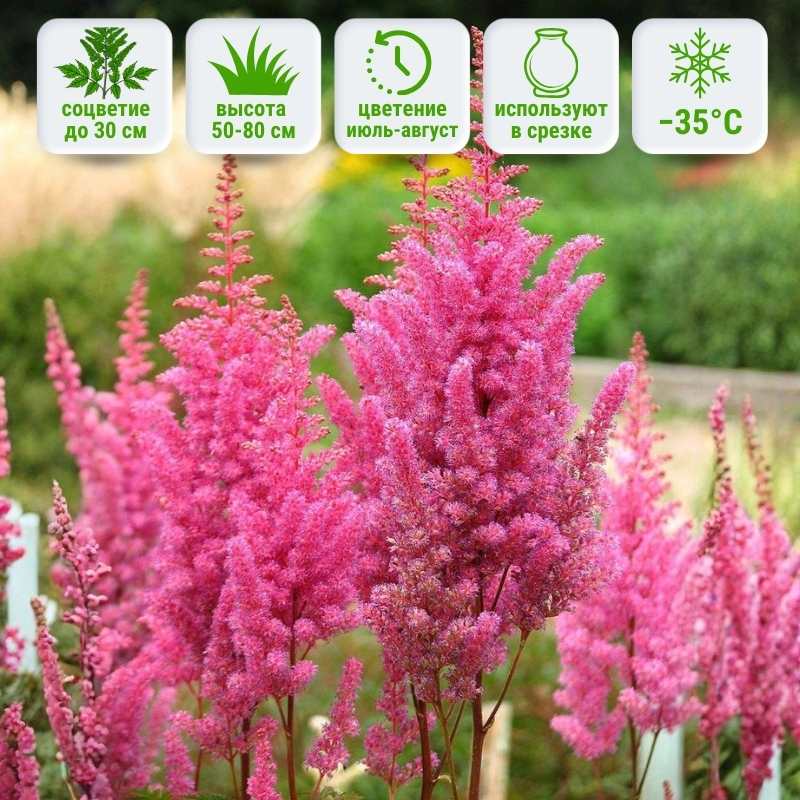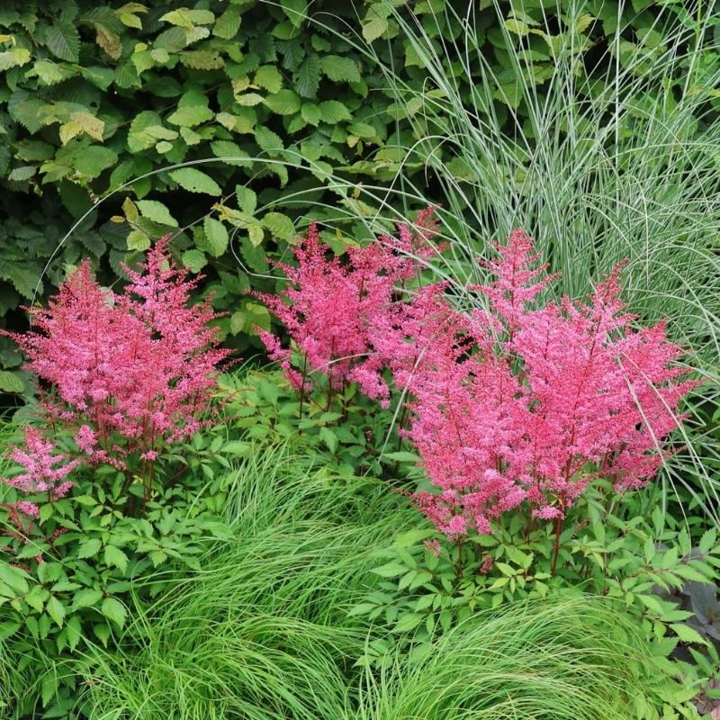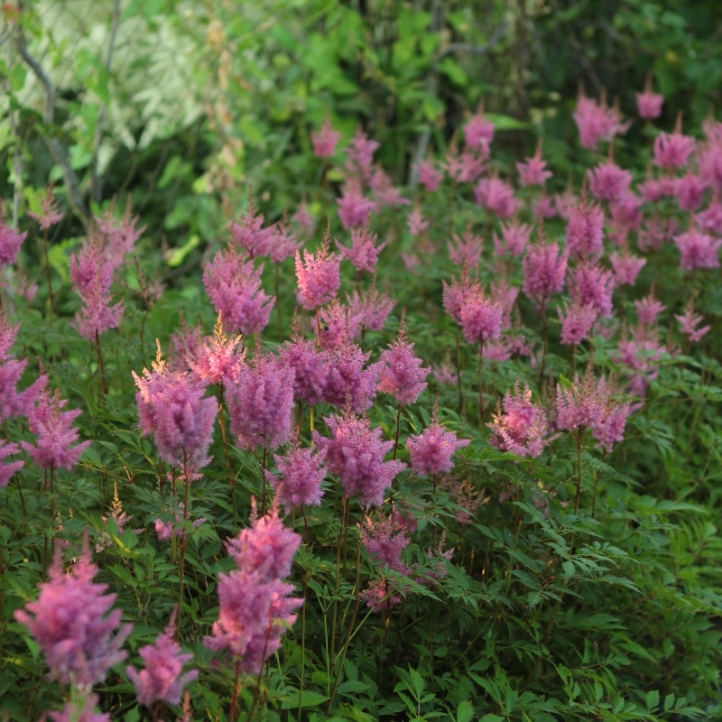 В середине лета все тенистые уголки дачи освещаются новым магическим цветом. Зацвела астильба. Её грандиозные пирамидальные соцветия-метелки состоят из супер-мелких пористых цветочков, которые наделяют растение воздушным видом сладкой ваты. Данный сорт цветёт продолжительно, начиная с июля. При величине куста в 60 см соцветие занимает по меньшей мере 20 см. У астильбы Gloria Purpurea нет аромата, но она компенсирует это своей неповторимой структурой цветка и ярким пурпурным оттенком, который со временем только усиливается. Травянистый куст богат на резную зелень, которая формируется только в нижней части. После отцветания метелки вместе со стеблем глубоко обрезают, так что остаётся зелёная куртинка, которая отомрет ближе к зиме.Астильба Арендса Глория Пурпуреа займет достойное место в вашем саду, особенно вместе с другими многолетними цветами, такими как купены, хосты, морозники, дицентры и лилейники. С папоротниками её чаще всего можно встретить у воды. Нередко астильбу используют в букетах, срезать необходимо рано, практически в начале цветения. Рекомендуется использовать астильбу Gloria Purpurea для создания бордюров, в живых изгородей или в качестве украшения террас и балконов в виде горшочной культуры.
