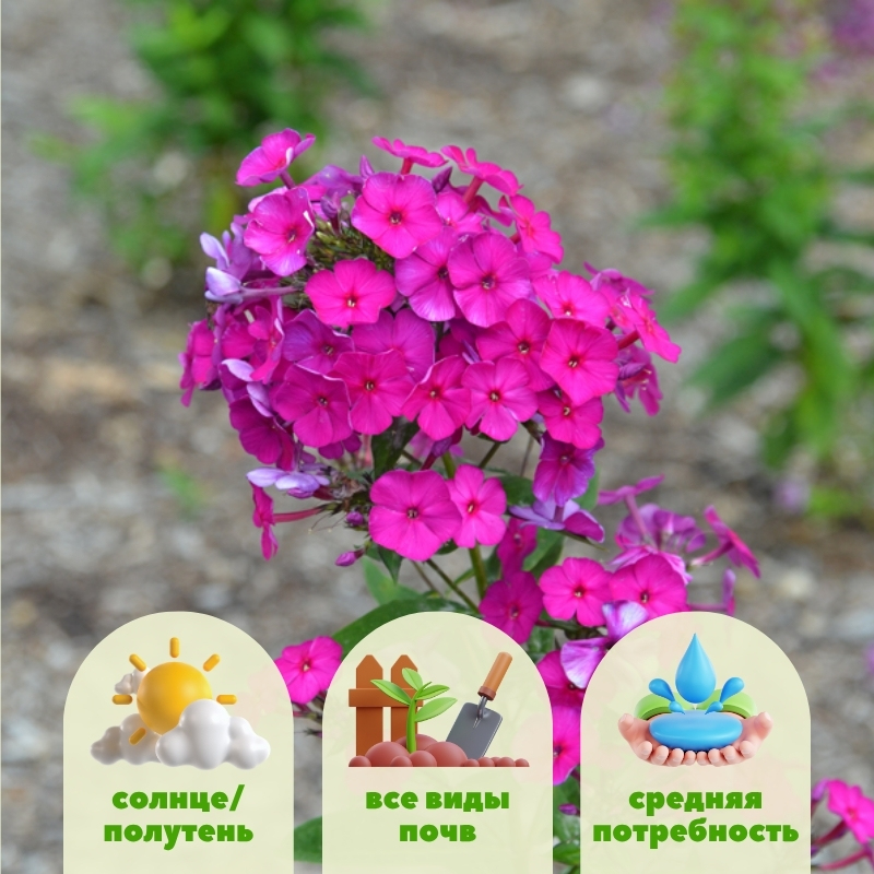 Флоксы не требовательные к уходу, благодарные растения, регулярный полив и подкормки будут щедро вознаграждены пышными, густыми соцветиями. Хорошо себя чувствует флокс The King (Кинг) на ярко-освещенных участках и в полутени, но в полутени цветение будет более длительным. В знойное жаркое лето рекомендуется прятать флоксы от палящих лучей. Главным плюсом кроме красоты соцветий флокса является отличная устойчивостью к грибковым болезням и высокая зимостойкость, благодаря чему разведение этого растения доступно по силу даже неопытным цветоводам из любого уголка России.