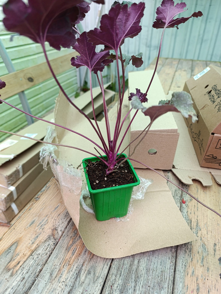 Корневая система саженцев гейхеры гибридной Блэк Перл для отправки заказчику упаковывается в индивидуальную упаковку из торфяной смеси, укутанной в пленку, благодаря чему ваш саженец придет живым и полным сил.