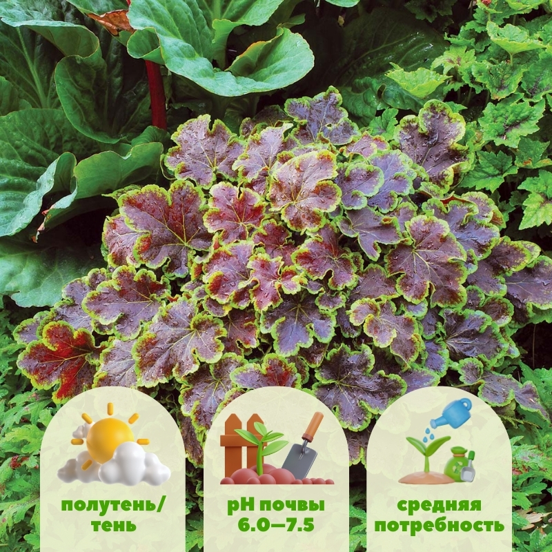 ФАКТ! Гейхеры с яркой окраской листьев необходимо высаживать на солнечном участке, так листва будет более выигрышно смотреться и проявлять всю свою красоту. Остальные виды необходимо высаживать в легкой полутени, желательно, чтобы лишь в утренние часы на них попадали солнечные лучи. Обратите внимание, что при выращивании на солнце нужен регулярный полив.