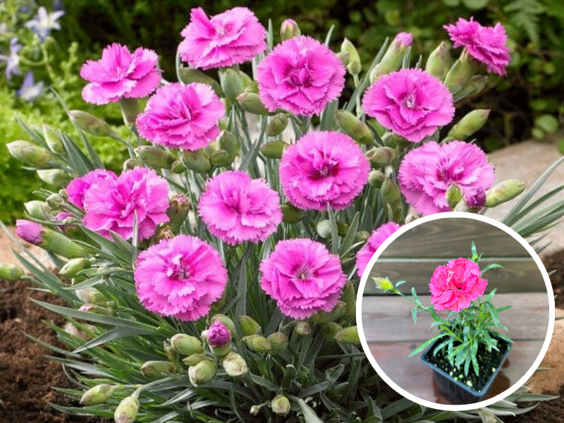 Розовая карликовая гвоздика – воплощение нежности и элегантности. Ее изысканные барби-цветки придают саду легкость и весеннее настроение. Этот многолетник цветёт на протяжении всего летнего сезона, украшая сад сочными красками. Устойчива к морозам до -29°C, что делает их отличным выбором для любых климатических условий. Высотой розетка формируется до 25 см, листья узкие линейные серебристо-зелёные. Розовая гвоздика прекрасно сочетается с белыми и голубыми цветами, создавая нежные композиции.Варианты размещения в саду гвоздики миниатюрной розовой: