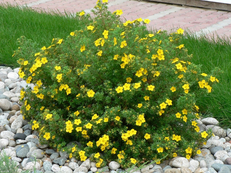 Лапчатка хороша в одиночной посадке, но чаще её можно встретить в групповой, когда растения обрамляют какую-либо часть двора или придомового участка.