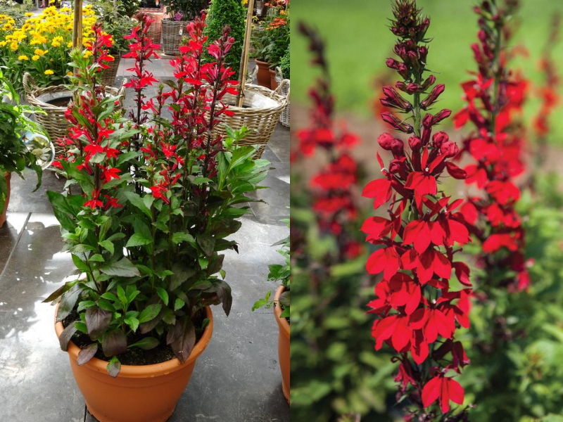 Это компактный многолетник, вырастающий до 60 см в высоту и до 30–40 см в ширину. Листья лобелии имеют насыщенный бронзово-зеленый оттенок, который удачно контрастирует с алыми цветками, распускающимися с июля по сентябрь в соцветиях, занимающих длину побега около 20 см. Цветки крылатые, чем-то напоминают бабочек, сверху двугубые, а снизу трехлопастные. Это растение средне зимостойкое (до -15 °C), подходит для умеренного климата, предпочитает влажные почвы. Декоративные цветки лишены аромата, но их яркость полностью компенсирует отсутствие запаха.Универсальность использования в саду:
