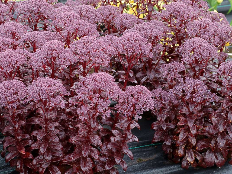 Привлекает внимание целостностью густого красно-свекольного цвета, который покрывает буквально весь куст: побеги, листья, соцветия, последние чуть поярче.Это многолетнее суккулентное растение, достигает высоты 40-50 см и ширины около 30-40 см. Листья мясистые, овальные, с насыщенным темно-пурпурным оттенком. Цветет с конца лета до осени, когда на верхушках побегов появляются плотные зонтичные соцветия розовато-красного цвета. Это растение привлекает множество опылителей, таких как пчелы и бабочки. Зимостойкость -35℃