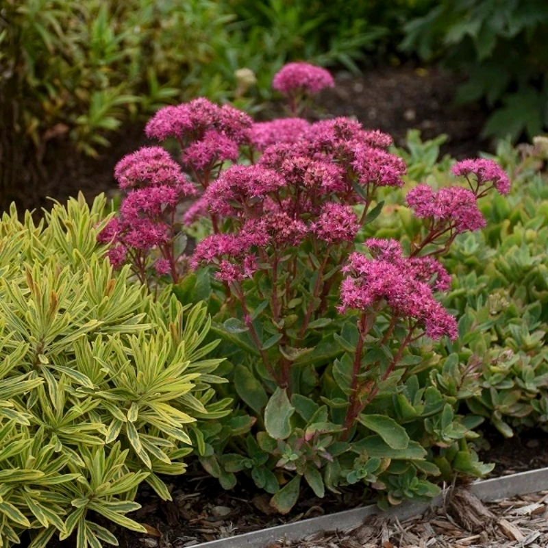 Sedum spectabile Carl — идеальное растение для тех, кто хочет, чтобы сад цвёл до самых заморозков. Он эффектно смотрится в:- миксбордерах