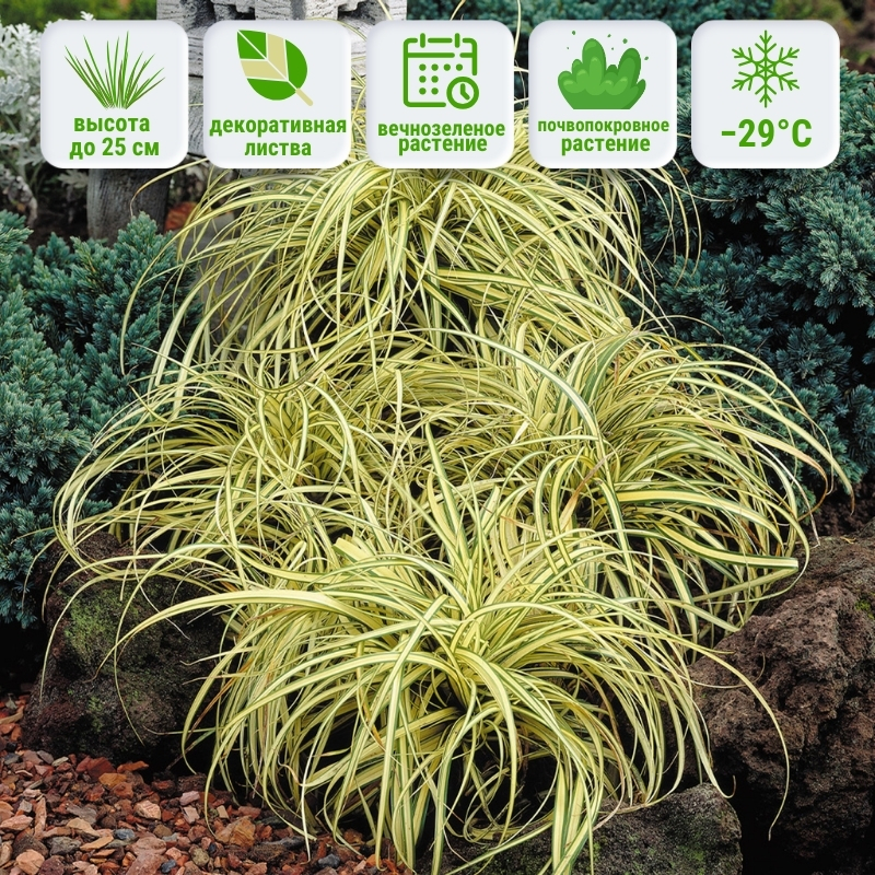 Carex пестролистная — универсальный инструмент ландшафтного дизайна. Она прекрасно смотрится как в одиночных посадках, так и в композициях с многолетниками и хвойными. Её используют для создания живых бордюров, оформления теневых клумб, посадки вдоль дорожек, в рокариях и у водоёмов. Это растение помогает смягчить линии камней и заборов, придаёт лёгкость композициям и вносит яркий цветовой акцент.Предпочтения в посадке:
