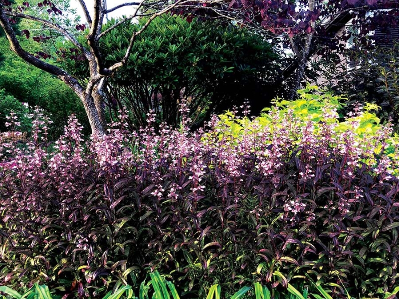 Чтобы увидеть красоту этого многолетника, вам потребуется высадить его на самом солнечном участке вашего сада. Что это даст? Окрас листа в свекольный цвет - визитную карточку растения. Первые тёплые деньки весны покажут из-под земли зелёные листья, чем ближе время к летнему периоду, тем темнее и краснее они становятся. Особенно яркими красными будут побеги и жилки в листьях. В июне месяце пенстемон Dark Towers зацветает нежно-розово-лавандовыми трубчатыми цветами, полными нектара, приглашающими на пир насекомых-опылителей. Цветение продолжительное, как правило, до наступления осени. Многолетник хорошо разрастается, один куст занимает до 75 см в диаметре, а высота его 60-90 см. Побеги не разваливаются и не выглядят неряшливо даже в непогоду, смотрят только вверх, возвышая к нашему взору свои соцветия.Penstemon digitalis Dark Towers особенно хорошо проявляет себя в засушливый период, перенял он это качество у своих прародителей. Хотя отсутствующий длительное время полив скажется на растении и он продемонстрирует повисшие лепестки. Это будет вам сигналом к обязательному поливу. Растение не токсично, но при этом его избегают кролики и даже слизни. Регулярная обрезка отцветших соцветий поможет продлить цветение и сохранить декоративность куста. Зимостойкость до -40⁰С.