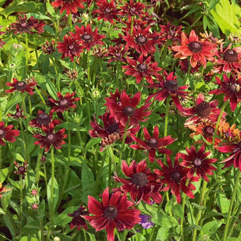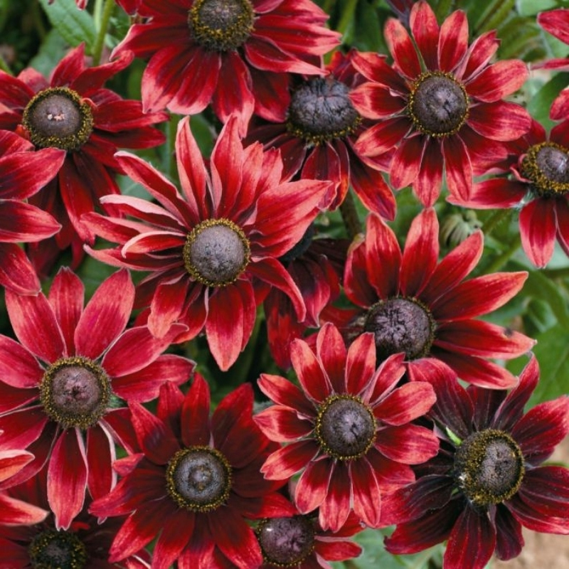 Rudbeckia hirta Cherry Brandy выполняет роль выразительного акцента на клумбе или бордюре — насыщенная винно-красная окраска действует как «яркое пятно» среди зелени. Хорошо подходит для:- посадки в массовых группах, среди трав или многолетников с контрастной листвой;