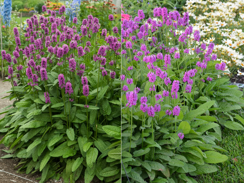 Цветы стахиса визуально воспринимаются только в соцветиях. Одним лишь бутончиком вы вряд ли бы заинтересовались, а вот пурпурной россыпью в колосовидном соцветии - вам непременно захочется любоваться. Цветочные ”ёршики” создают потрясающий визуальный эффект с середины лета до осени. Стахис Monieri Hummelo обычно вырастает до 40 см в высоту и ширину, а вот цветоносы взбираются повыше - до 60 см. Насыщенная зеленая листва остается привлекательной в течение всего вегетационного периода, даже когда растение не цветет. В южных регионах на зиму не отмирает.Растение устойчиво к различным климатическим условиям и температурам, выдерживает зимы в -35°C. В саду пользуется колоссальным интересом у летающих насекомых, которые так и жужжат над кустом. В саду чистец Hummelo очень универсален и может быть использован в различных ландшафтных дизайнах. Он прекрасно подходит для бордюров, придавая структуру и цвет краям садовых клумб. Он также эффективен в массовых посадках, где его яркие цветы могут создать поразительный визуальный эффект. Стахис Монье хорошо сочетается с другими многолетниками, такими как декоративные травы, эхинацеи и седумы, добавляя текстуру и контраст в садовые композиции.