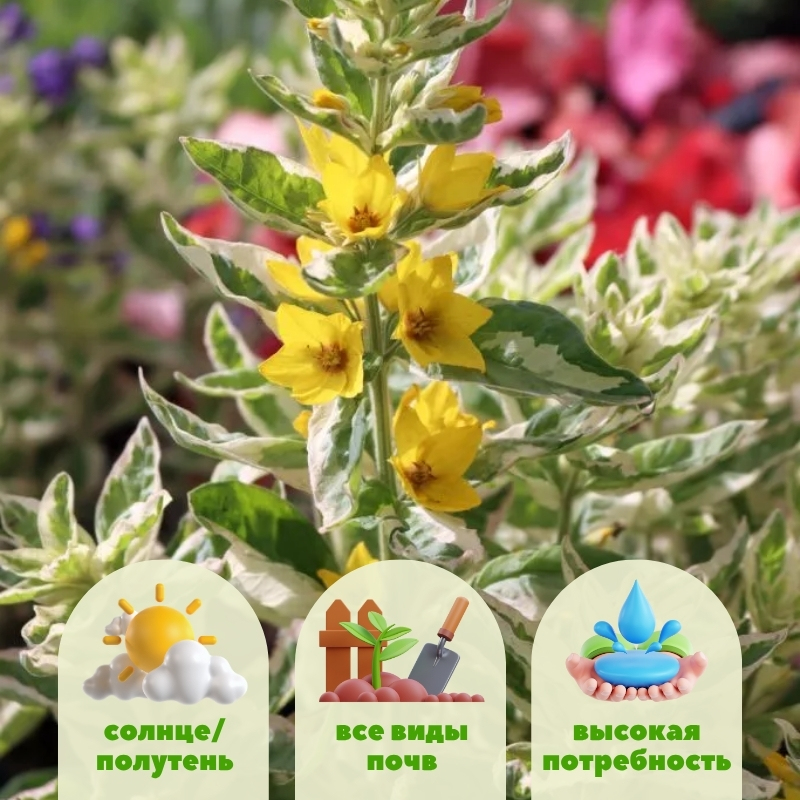 Вербейник предпочитает солнечные или слегка притенённые участки, в жарком климате возможно выращивание только в полутени. Почва должна быть влажной, питательной, хорошо дренированной, но без пересыхания — это растение особенно любит регулярный полив в жаркое лето. При недостатке влаги побеги могут поникать, кончики листьев буреют, а цветение ослабевает. Идеально подходит для участков с умеренно влажной почвой, рядом с прудом или в низинах, где вода задерживается чуть дольше. Весной можно внести лёгкое комплексное удобрение для стимуляции роста. Осенью побеги обрезают почти до земли, чтобы весной куст вновь дал свежую яркую листву. Вербейник быстро разрастается, поэтому раз в несколько лет его можно делить и рассаживать, сохраняя аккуратный вид куртины.Доставка вербейника точечного Александр осуществляется с помощью услуг почты России и транспортных компаний, возможна доставка авиа-почтой и курьером.