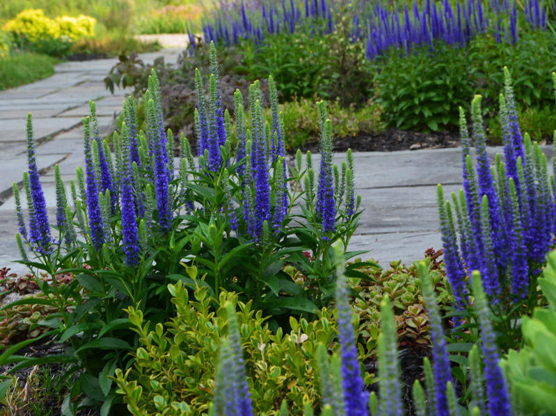 Вероника колосковая прекрасно чувствует себя в декоре с другими садовыми цветами, поэтому станет украшением любого участка.