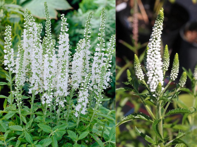 Вероника колосковая белая — это многолетнее травянистое растение высотой до 40-60 см. Оно образует прямостоячие стебли, которые заканчиваются плотными колосовидными соцветиями белого цвета. Листья ланцетные, темно-зеленые, покрытые мелкими волосками. Цветет с июля по август, радуя сад продолжительным цветением. После она образует декоративные семенные коробочки, которые можно использовать в зимних букетах. Зимостойкость до -35℃.Использование в саду