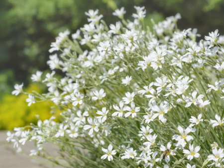 Церастиум - низкорослое растение, обычно достигающее высоты около 20 см и распространяющееся в стороны до 70 см, образуя густой покров. Листва серебристо-зеленая, ланцетовидная и слегка пушистая, что придает ей уникальную текстуру. С конца весны до начала лета ясколку украшают белые пятилепестковые цветы, которые сверкают на фоне листвы. Это растение отличается прекрасной зимостойкостью -40°C и не требует укрытия.Использовании в саду ясколки: