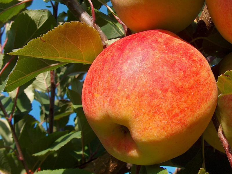 Главное в яблоках что? Конечно же их десертный вкус. Пусть это понятие весьма относительное, но большинство садоводов сходится в едином мнении, что яблоки Чемпион очень сладкие и дают им дегустационную оценку в 4,7-5 баллов. Мякоть в меру сочная с характерной зернистостью, легко раскусывается, так как кожица тонка и совсем не мешает. Цвет яблок красно-оранжевый с небольшой зеленцой и белыми вкраплениями. По форме они округлые, все как на подбор массой 160-200 г. Созревают уже к концу сентября. Не стоит медлить со сбором, так как сорт подвержен к осыпанию. Хранятся яблоки несколько месяцев.