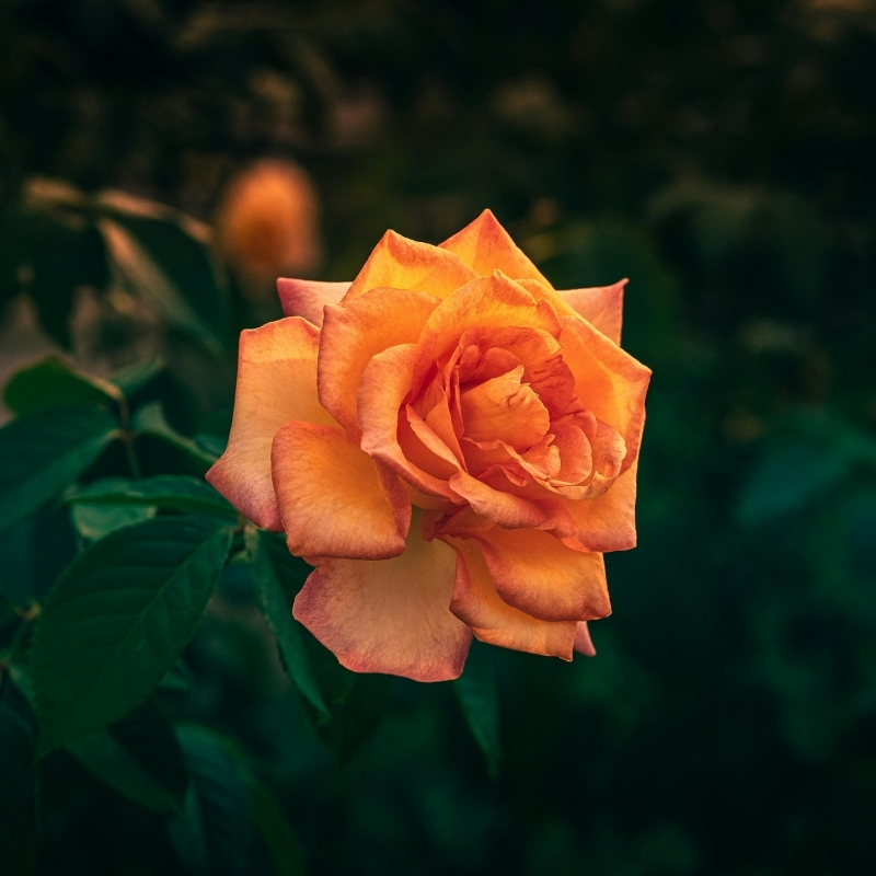 Сорт формирует аккуратный компактный куст высотой около 70–90 см и шириной 60–70 см. Цветки одиночные, классической формы чайно-гибридной розы, диаметром примерно 7–9 см с 30 шт лепестками, окрашенными в насыщенный оранжево-жёлтый тон, переходящий в карминовый к кончикам. Аромат лёгкий. Листва тёмно-зелёная блестящая, подчёркивает яркость цветка и делает куст визуально выразительным. Сорт цветёт повторно, весь теплый сезон до осени. Чайно-гибридная роза Мираж обладает высокой устойчивостью к чёрной пятнистости и мучнистой росе, зимостойкость до –23°C.Универсальность использования в саду: