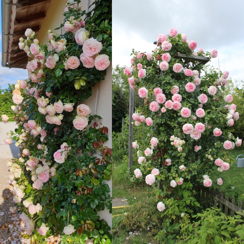 Очаровательно нежное создание плетистая роза Пьер де Ронсар манит своими пышными, старинными цветами восхитительной красоты.