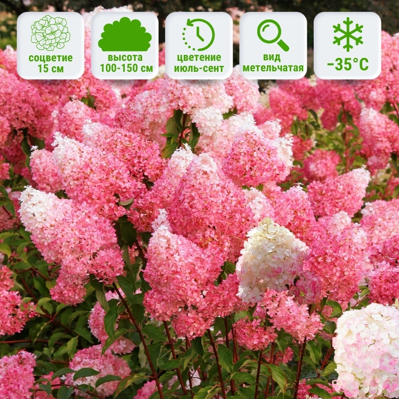 Зимостойкая гортензия метельчатая FRAMBOISINE займет в вашем саду достойное место и станет его главным украшением. В одиночных и в групповых посадках она будет радовать вас обильным цветением с весны и до середины осени. Великолепный вариант для создания флористических композиций.