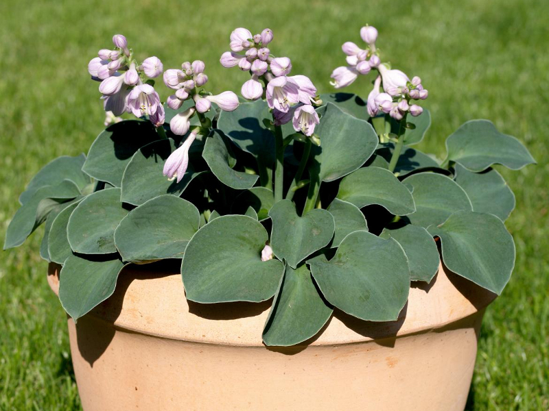 Хоста Blue Mouse Ears особенно хороша во время цветения в июле-августе. На цветоносах появляются лавандового цвета бутоны, по форме, напоминающие колокольчики. Это игривый интересный сорт, который подходит для любого цветника, альпинария и даже для горшковой посадки. Стоит внимательно отнестись к выбору места, так как в более тенистых ареалах хоста будет медленно расти, лучше временно высадить на хорошо освещаемой грядке, а после пересадить. Не требует укрытия на зиму.