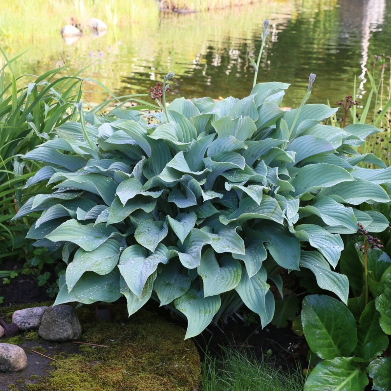 Мягкая синева хосты Halcyon (Халцион) словно морская пучина, притягивает своей могучестью и глубиной цвета. Сонный сад окутан спокойствием и безмятежностью, в которой хочется раствориться.