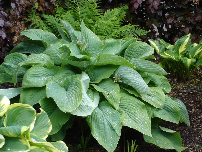 Хоста гибридная Т Рекс (T Rex) оправдывает свое громкое имя - это настоящая гигантская звезда тенистого сада. Ее массивные, насыщенно-зеленые листья создают впечатляющий фон и превращают любой участок в уголок дикой природы.