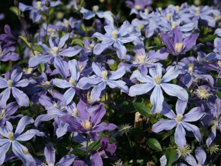 Цветки его достаточно малы, но большое количество их всё же меняет картину в выигрышную сторону. Ярко фиолетовые, со временем они светлеют до голубого окраса. Сердцевина контрастного бело-кремового цвета. Пора цветения наступает уже в июне, длится всё лето и частично осень, так в тёплых регионах цветки в октябре не редкость. Важно помнить, что цветки распускаются только на побегах текущего года. Обрезают куст максимально под корень (3 тип). Ни для кого не новость, что последнее время вертикальное озеленение находится на пике своей популярности. Простота выращивания и бесчисленное множество вариаций растений кружит голову даже самому матерому садоводу