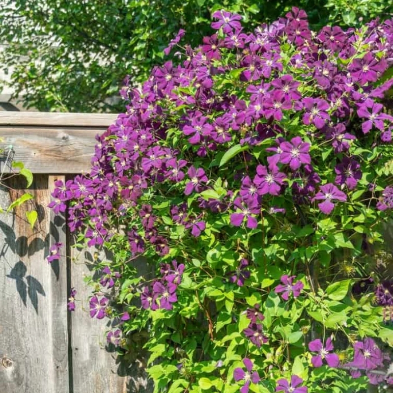 Для украшения стен и заборов в саду часто высаживают вьющиеся растения, среди которых самым сильно - цветущим видом и с самой насыщенной окраской является клематис. В период цветения на каждой его ветке распускается более десятка цветов. Многие стебли и ветки переплетаются. Бесчисленные цветы эффектны, как льющийся водопад, образуя очаровательный пейзаж в саду.