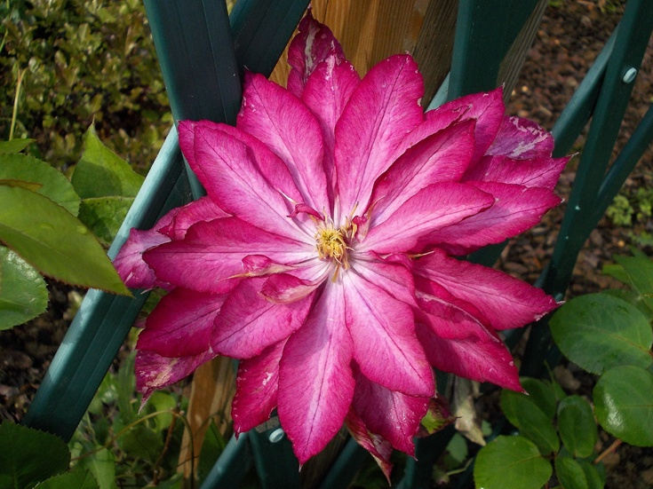 Это необыкновенный японский сорт клематисов, отличающийся от прочих своим эксклюзивным окрасом. Каждый цветок уникален и прекрасен на всех стадиях роспуска. В одном бутоне клематиса Кайен можно встретить малиновые, розовые, белые и зеленые цвета. Чтобы понять как это сочетается, его надо увидеть. Цветки очень пышные, махровые и полумахровые диаметром от 8 до 14 см. Чашелистики широко-ланцетообразные с острым концом. Середина украшена яркими жёлтыми тычинками.