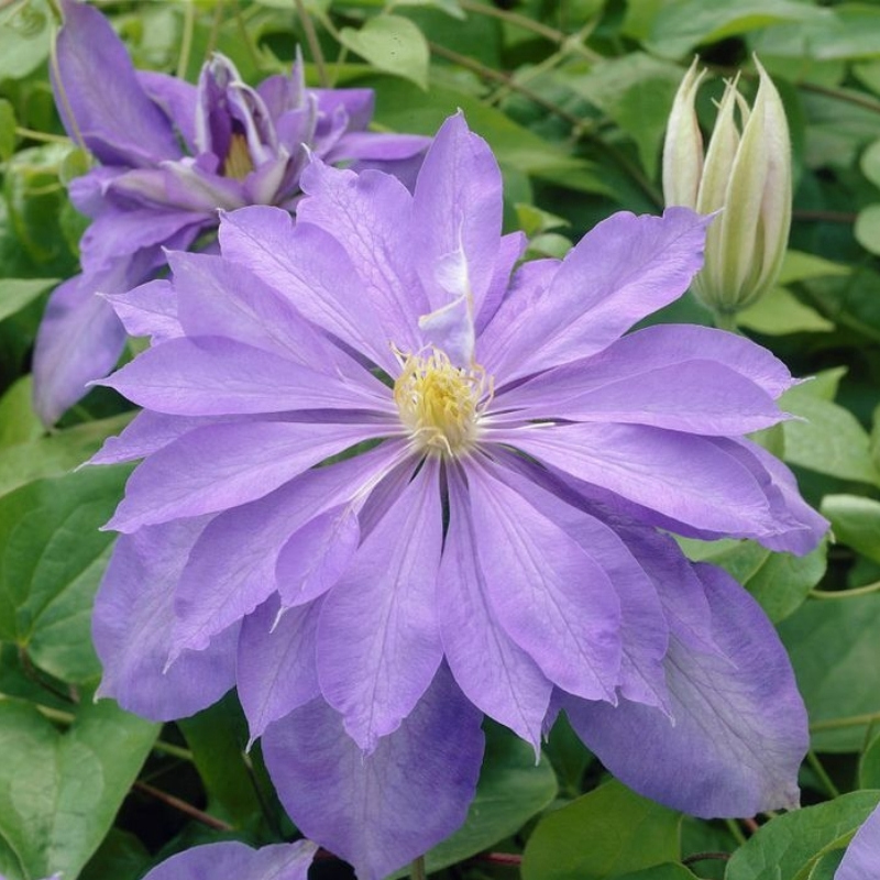 Этот сорт прекрасно подходит для украшения пергол, арок, беседок и декоративных ограждений. Clematis Countess of Lovelace хорошо смотрится в сочетании с розами, особенно пастельных оттенков, а также с другими декоративными кустарниками. Его мягкие лавандовые тона удачно дополняют садовые композиции в светлых, холодных и пастельных цветах, создавая изящный и романтичный акцент в любом уголке сада.Рекомендации по уходу за клематисом Контес Оф Лавлейс и его посадке: