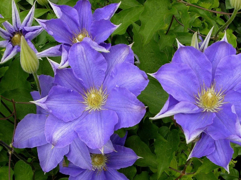 Для украшения стен и заборов в саду часто высаживают вьющиеся растения, среди которых самым сильно - цветущим видом и с самой насыщенной окраской является клематис. В период цветения на каждой его ветке распускается более десятка цветов. Многие стебли и ветки переплетаются. Бесчисленные цветы эффектны, как льющийся водопад, образуя очаровательный пейзаж в саду.