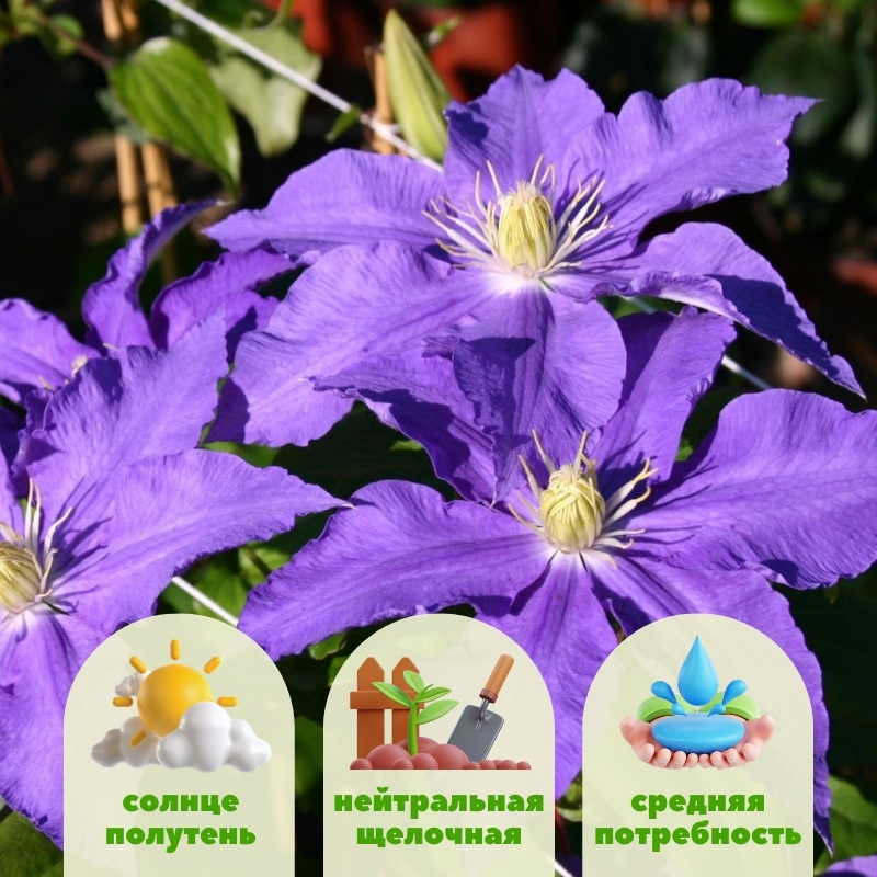 Клематис Лазурштерн (Lasurstern) — это проверенная временем классика, выведенная в начале XX века и до сих пор сохраняющая популярность у садоводов по всему миру. Эффектный ранне-летний фаворит с крупными лавандово-голубыми цветами, который освежит и гармонизирует пространство вокруг.