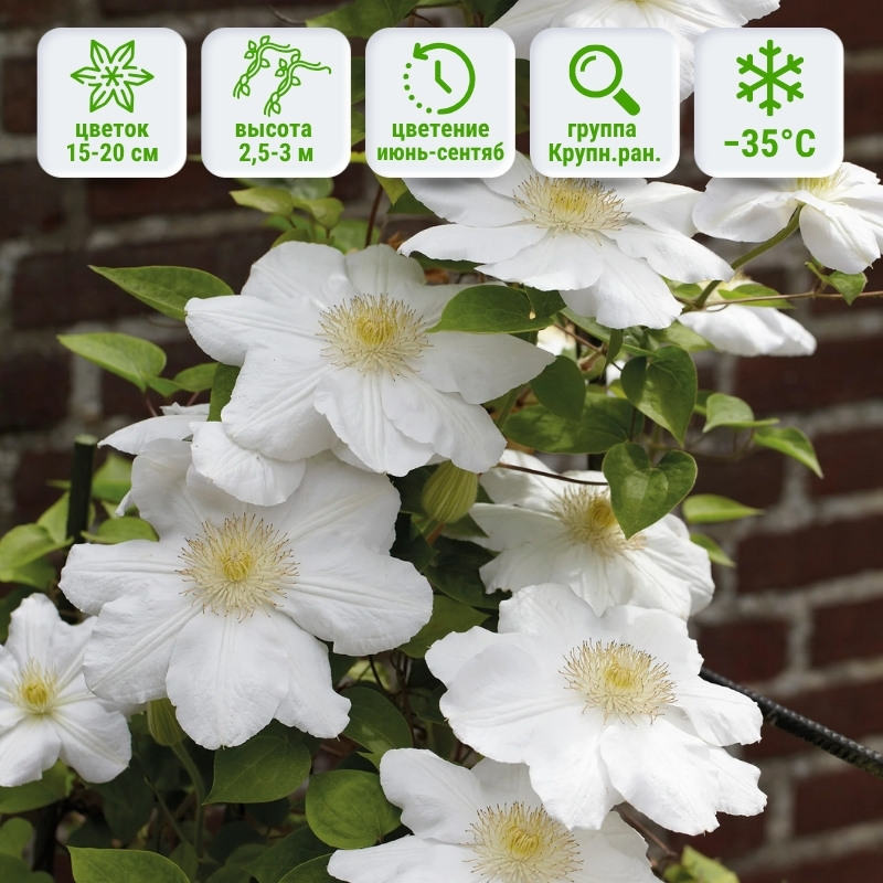 Почему клематис Мадам Ле Культре (Madame Le Coultre) считается одним из самых лучших среди белых сортов? Да потому что он щедрый, крупноцветковый, энергичный, простой в выращивании, принимает вертикальный и горизонтальный вид!