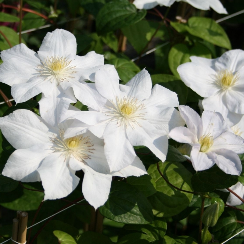 Ослепительные цветы клематиса Мадам Ле Культре сияют из глубин сада, дополненные многочисленной изумрудной листвой. Вы можете поместить эту цветочную драгоценность прямо у дома, высадив растение в горшок. Любой выход на балкон или отдых на летней террасе, будет сопровождаться ощущением чистоты, комфорта и нежности. Хотите добавить магию и изысканность? Высадите рядом фиолетовые глицинии или вечнозеленый плющ. Абсолютный дуэт и фантастическое сочетание предоставят клематисам Madame Le Coultre плетистые розы.