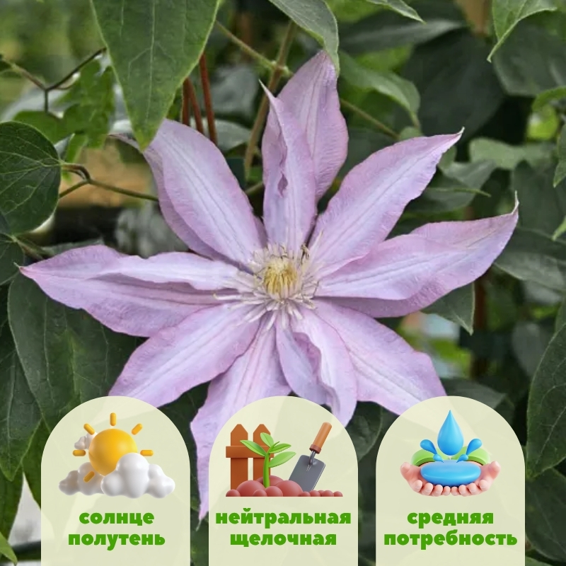 Clematis Mrs. Spencer Castle прекрасно смотрится на перголах, арках и оградах, где её розовато-сиреневые цветы станут нежным акцентом. Сочетайте её с белыми или сиреневыми растениями - лилями, глицинией, дельфиниумами, чтобы подчеркнуть мягкий оттенок, или используйте в композиции с розами и другими клематисами для создания эффектных цветочных каскадов.Рекомендации по уходу за клематисом Миссис Спенсер Кастл и его посадке: