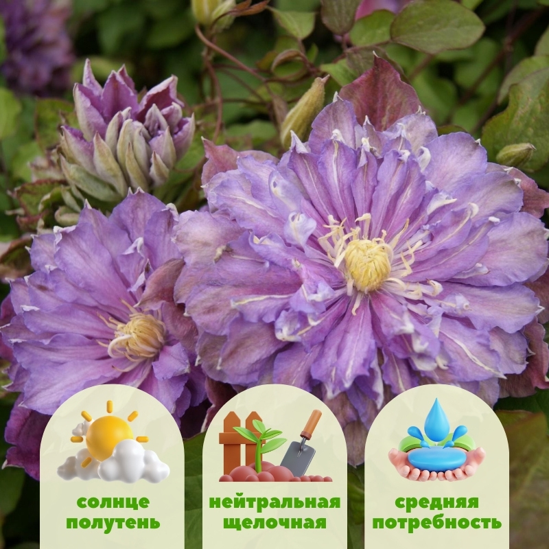 Получите поздней весной щедрое махровое цветение, завершите лето изысканными широкораскрытыми цветами. На оба сезона одно растение - клематис Паола (Paola). Этот живописный сорт покоряет своей нежной и в то же время выразительной окраской.