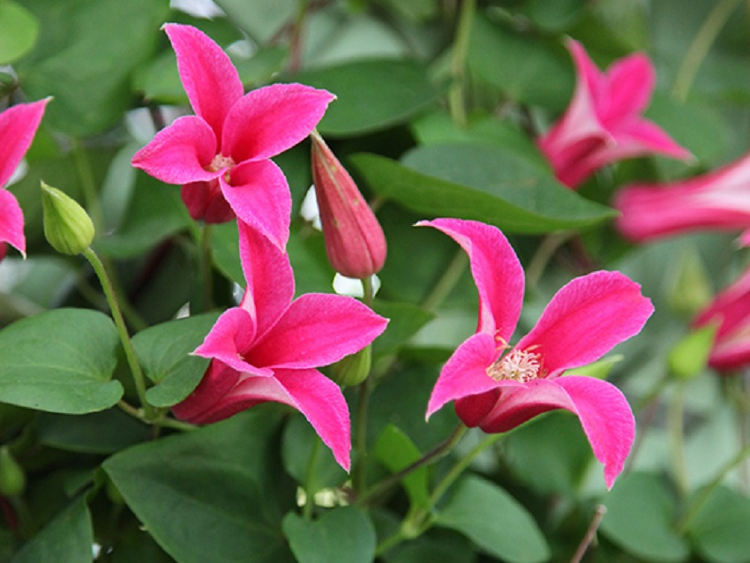 Ни одна принцесса в мире не имела столь великую славу и искреннюю любовь народа, потому не удивительно, что именно этот клематис носит её имя. Вы только посмотрите на этот искристый и приятный взору розовый окрас цветов. Бутоны клематиса Принцесса Диана удивительно похожи на тюльпаны. Состоят они из 4-5 лепестков плавно отгибающихся наружу. Скромного размера цветочки всего 5-6 см в диаметре. Первое появление Вы заметите уже в конце июня, сорт активно цветет вплоть до конца августа. Иногда может цвести часть осень.